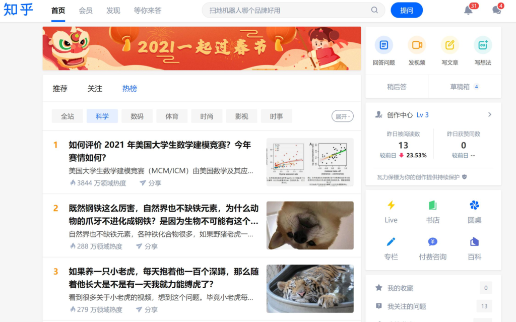 まずYahoo!知恵袋はQ&Aの機能以外はほとんどなく利用者もQ&A以外での利用をすることは少ないですが、知乎はQ&Aだけでなくあらゆる知識コンテンツがアプリに入っているので何か学びたいことがあるときに真っ先に開くアプリになっています。それにより会員サービスや知識欲を満たすようなコンテンツのファンが増え、知乎に滞在する時間も伸びることになっています。