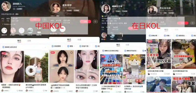 上記は小紅書で中国KOLと在日KOLが投稿している例となります。 多くの日本企業は、自社の商品を宣伝するために在日のKOL(インフルエンサー)を活用するのが適切だと考えているかもしれません。しかし、より効果的なアプローチは、中国の消費者が自らフォローしたいと考えるKOLを選ぶことです。