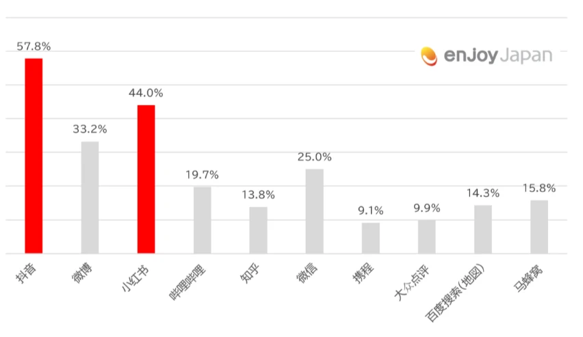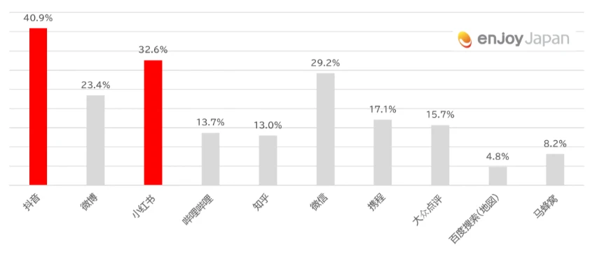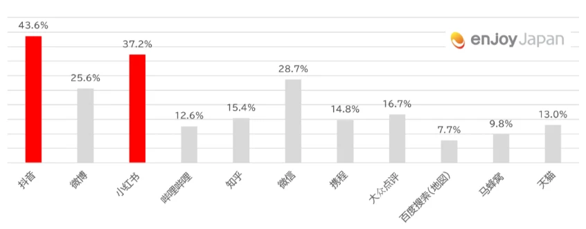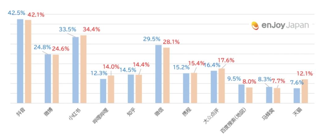 日本に旅行している際に商品情報の取得先メディアには、第1位:抖音(ドウイン)、第2位:小紅書(RED)、第3位:微信(WeChat)、第4位:微博(Weibo)、第5位:携程(Ctrip)という結果となりました。