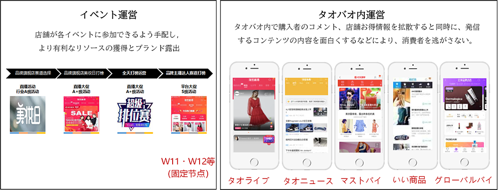 - 付加サービス:TMALLやTAOBAOプラットフォームのイベントに参加することで、露出の機会を増やすことができる。