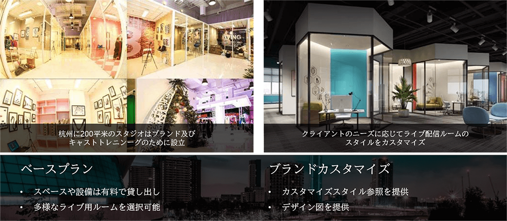 - クライアントの要望に応じてライブスタジオを用意し、スペースや設備は有料で貸し出しできる。カスタマイズもできる。