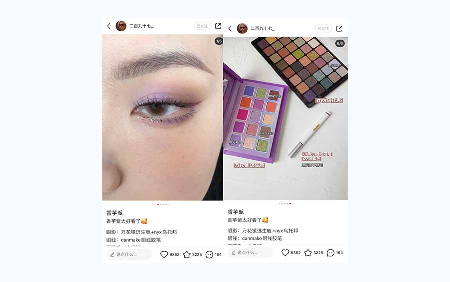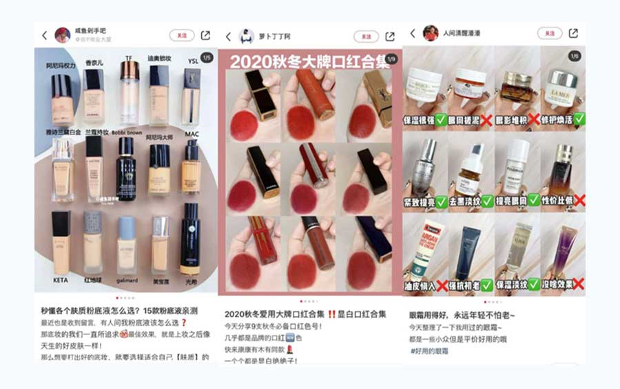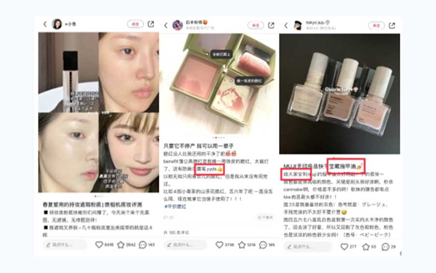 今日暇だったので小紅書を見ていたら、KOLがとても可愛い口紅を紹介する投稿が表示された。よく見たら○○という新しいブランドだった。今度はフォローしているKOLがまたこの○○ブランドの新商品を紹介していた。○○というブランドがあることを認知。(※事例4参照)