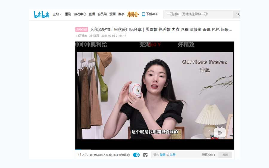 ビリビリ動画においても同様に商品を購入できます。ただ、購入までの導線は抖音の方が優れています。(※事例12参照)