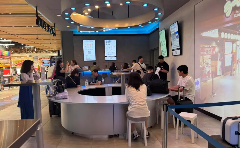 現在、「FLYING JAPAN旅行者センター」には月間約3,000組が訪れ、その8割が韓国人、残りの2割が中華圏や欧米圏の旅行者です。特に注目すべき点は、利用者の滞在時間が長いこと。荷物の預け入れやスマホの充電中、観光情報を収集しながらゆっくりと過ごす傾向があります。