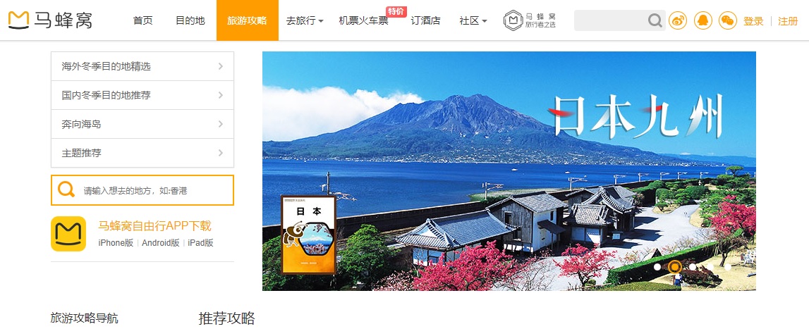 Mafengwo(馬蜂窩・マーファンウォー) http://www.mafengwo.cn/とは、中国最大級の旅行口コミ投稿サイトです。近年中国ビザの緩和や航空便の増加により、FITと呼ばれる個人旅行で日本を訪れる中国人観光客が増加しています。FITは自分で情報収集しなければならないため、中国で爆発的な人気となったのが旅行の口コミメディア・馬蜂窩です。中国人インバウンドの集客を目指す企業なら、ぜひチェックしたいメディアです。