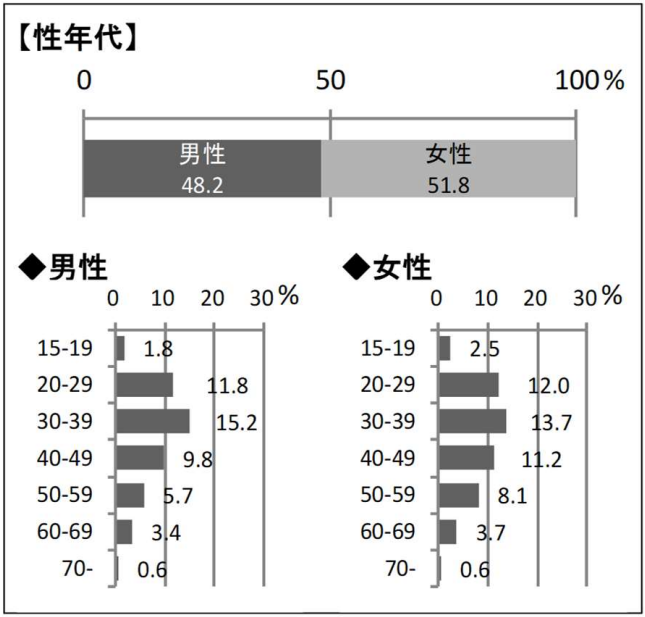 日本を訪れた香港人観光客の年代・性別