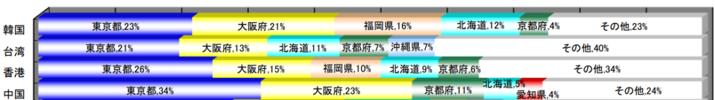 観光庁が2025年に実施した宿泊旅行統計調査によると、香港人が日本旅行で宿泊した都道府県で最も多いのは東京、大阪、福岡の3都道府県です。