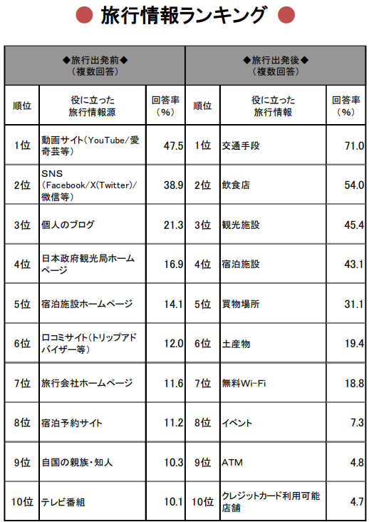観光庁の調査では上位8位までをネット媒体が占めており、さらに1位、2位ともにSNSがランクインしています。