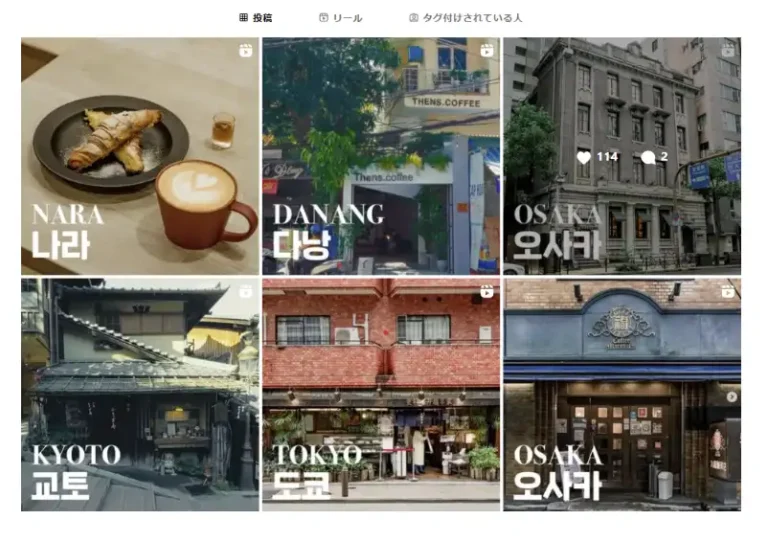 京都、大阪、東京によく旅行に行っており、投稿内容も統一感があってとても見やすいです。リールでの投稿がメインで、お店の雰囲気や食べ物のことなどが鮮明に伝わりやすいのも魅力の一つです。また、お店の営業時間や場所なども詳細を載せてくれているため、旅行に行く際にはぜひ参考にしたいです。