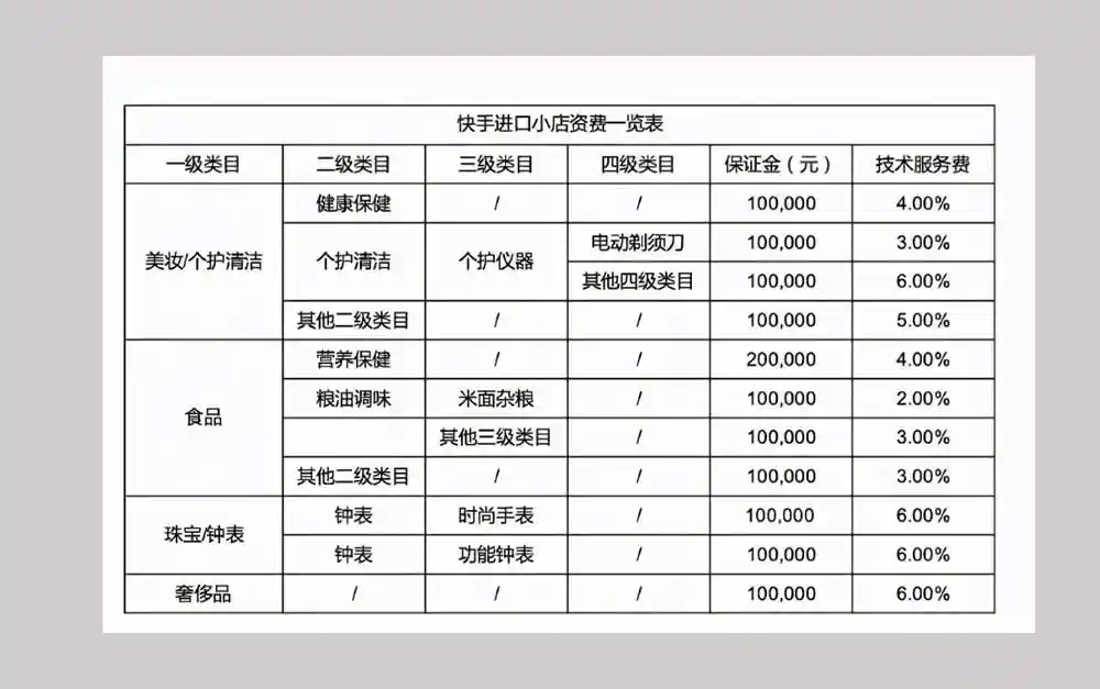 現在、快手進口店で販売可能なカテゴリーは、以下のようになっています。