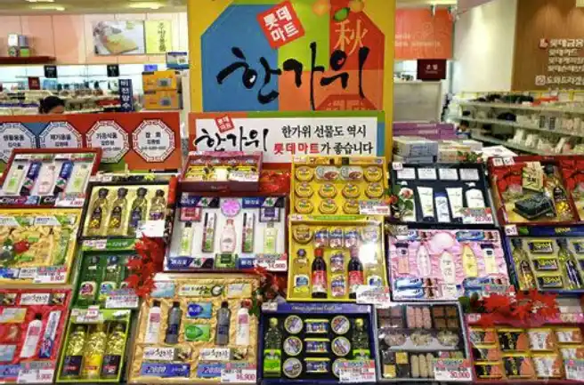 秋夕(チュソク)があり、多くの飲食店やショップが連休中は休業します。旧正月と同様で、実家に帰省する人もいれば、海外旅行に行く人もいます。日本ではお盆の時期に日頃お世話になっている人たちにお中元を贈る風習がありますが、韓国の秋夕でも同じような光景が見られます。百貨店や大型マートには特設売場が登場し、定番品の韓国牛や果物から乾物類、酒類、コーヒーや洗剤の詰め合わせなどがギフトとして並び、贈り物商戦が繰り広げられます。