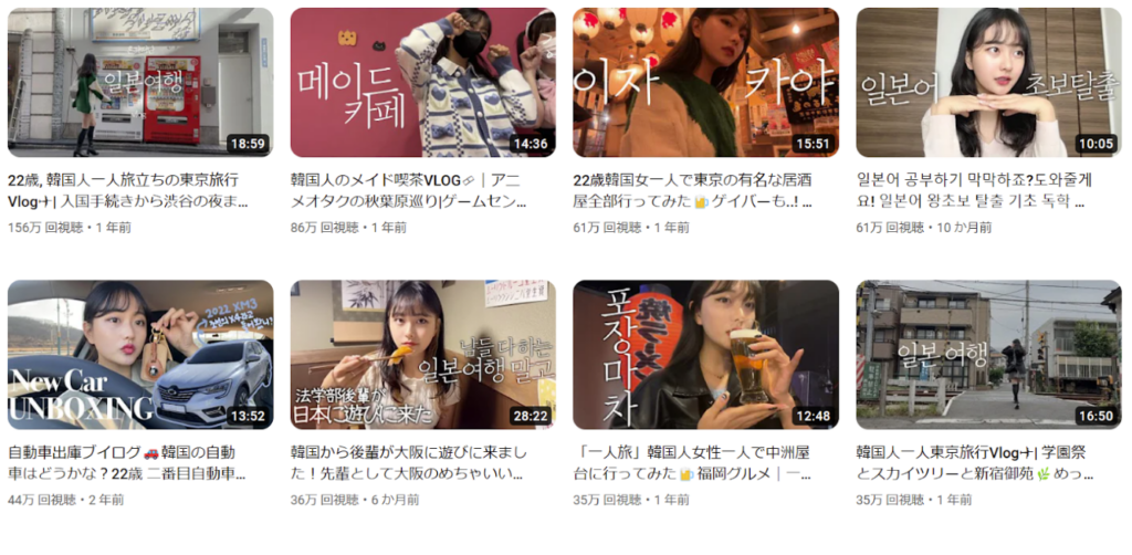 日常生活のvlogから、日本の有名な観光地の紹介やワーキングホリデーに関することまで投稿しています。また日本語の勉強の仕方や韓国人がよく使う言葉なども紹介しているため、勉強に役立つ投稿が多いことも人気の一つです。