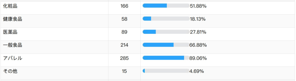 2019年年次報告書(観光庁)訪日外国人の消費動向データでも81.9%が化粧品を選択しており、アパレル(衣類)は、38.5%とやはりそこまで高いカテゴリーではなかった(参考資料②)。