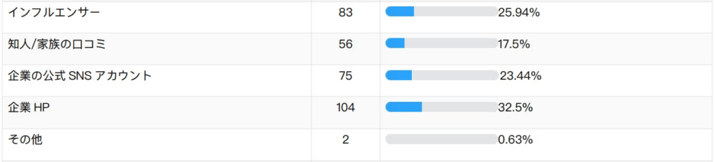 質問:商品情報を収集する際に、どの情報源を最も重要視(信頼)しますか? ※複数回答不可