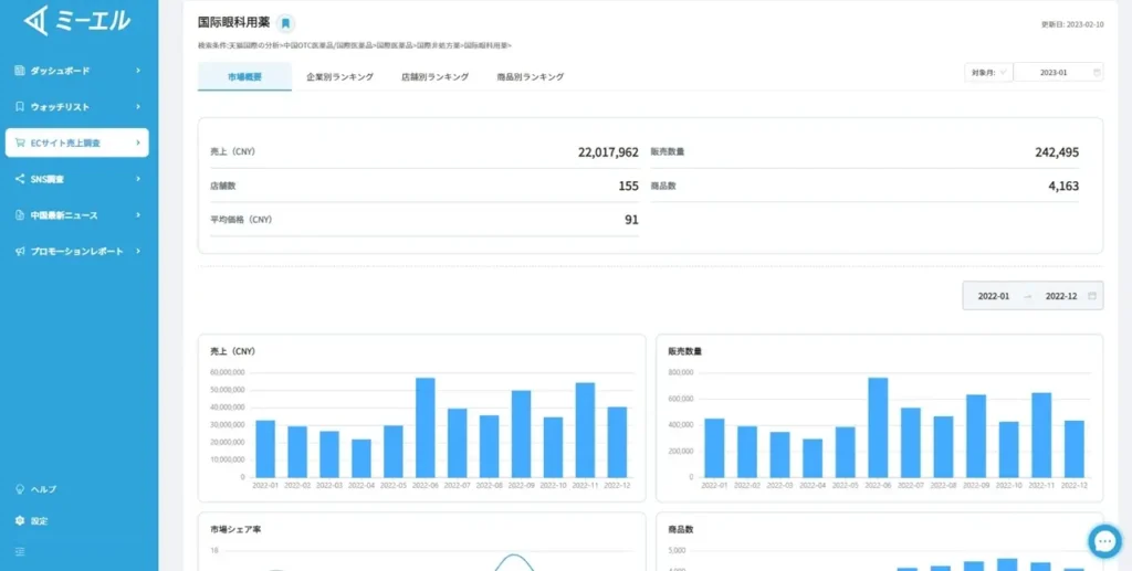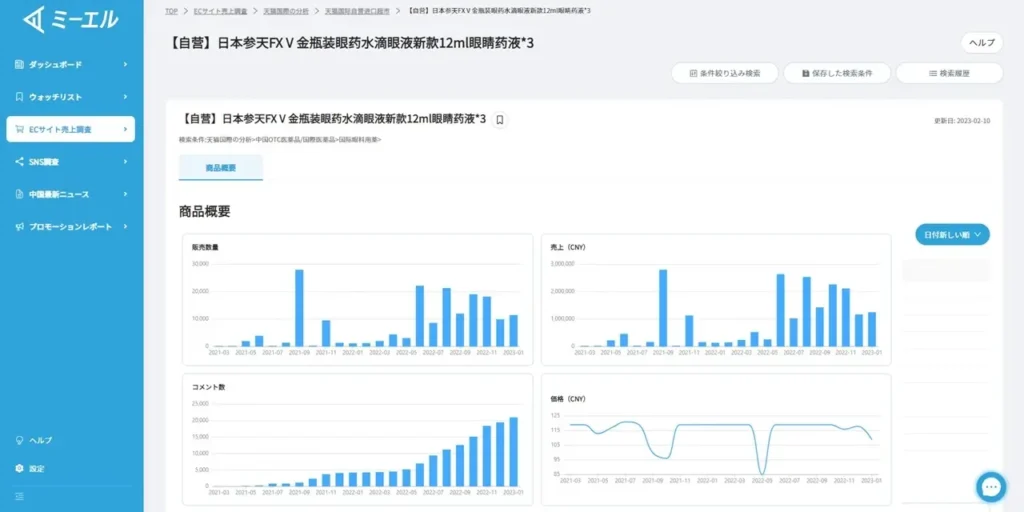 越境ECや訪日インバウンドなどの中国マーケティングを支援する株式会社ENJOY JAPAN(本社:東京都新宿区、代表取締役 瞿史偉、以下「ENJOY JAPAN」)は、中国マーケットを分析できるマーケティングシステム『ミーエル(Ver.2)』を開発。2023年3月1日より販売を開始いたします。 『ミーエル(Ver.2)』は、中国の主要SNSである、小紅書(RED)、抖音(中国版TikTok)、ビリビリ動画、微信(wechat)のインフルエンサーの分析や、口コミの分析などから、天猫(天猫国際・タオバオ)の販売データを分析することができます。 また、『ミーエル』は、令和2年度第2回革新的サービスの事業化新事業に採択されたことにより開発を進め、ミーエルVer.1からECデータ蓄積量の増加、分析プラットフォームの増強、さらにより使いやすいユーザーインターフェイスへと改良しました。