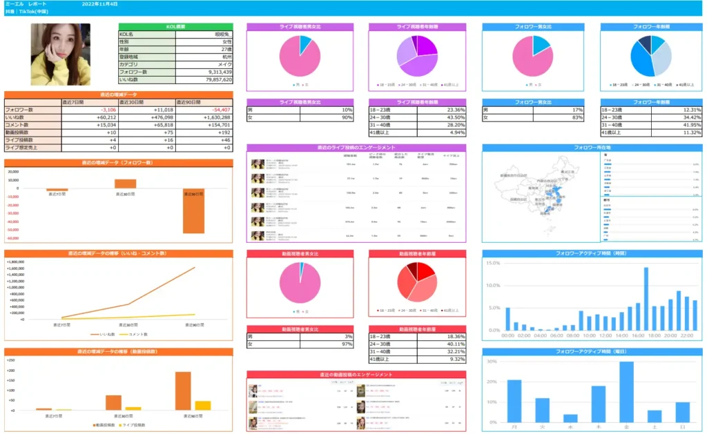 ミーエルVe.2 インフルエンサー 抖音(中国版TikTok)分析レポートExcel版