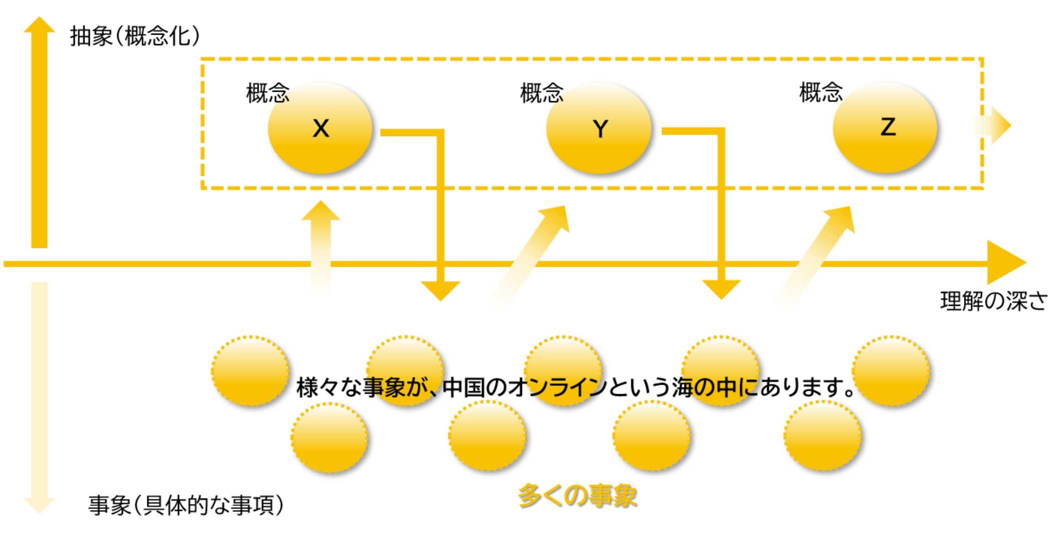 あらゆる事象から抽出された概念を繰り返しビックデータと突合させ、概念を構造整理することで、消費者の深層心理に近づくことができます。